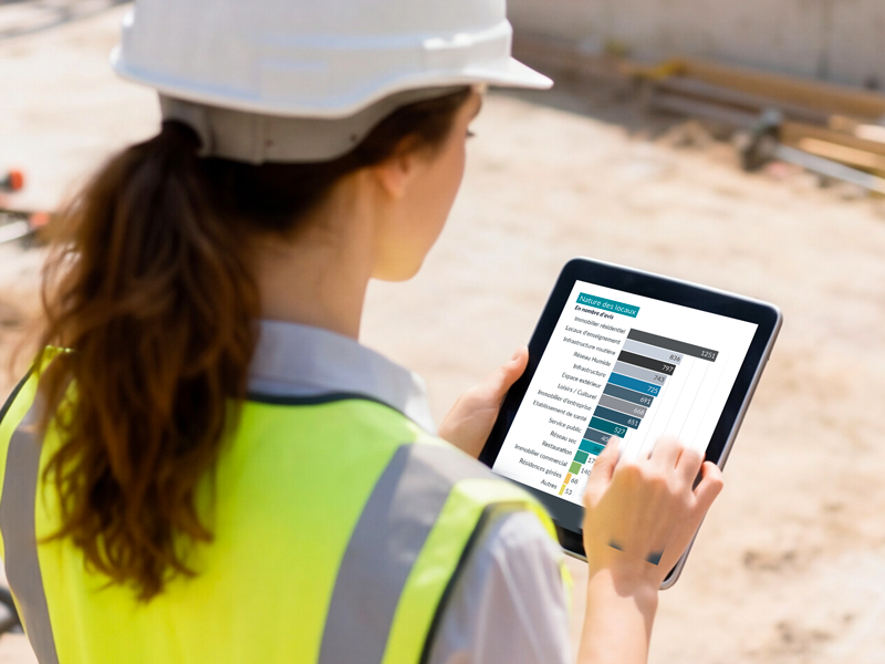 Le Baromètre mensuel des Marchés Publics de Travaux permet d’analyser le volume d’avis par localisation des donneurs d’ordre, nature de travaux (travaux neufs vs Rénovation-restructuration), secteur d’activité, nature de locaux. Enfin, un « top 10 » des donneurs d’ordre permet de visualiser les décideurs les plus actifs sur la période.